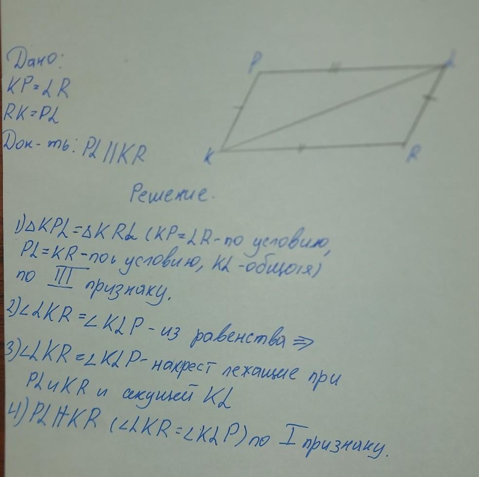 2 .За ІІІ ознакою рівності тр - ків ΔKPL = ΔLRK ( KP = LR , PL = KR -
