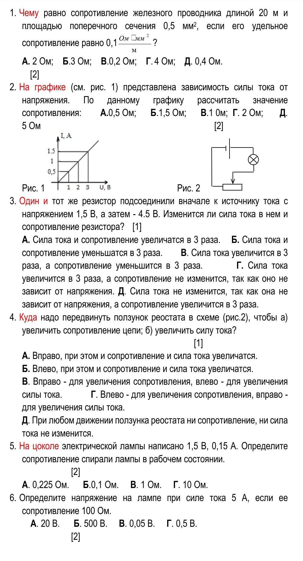 2) По закону Ома: R=U/I=2/1=2 Ом
