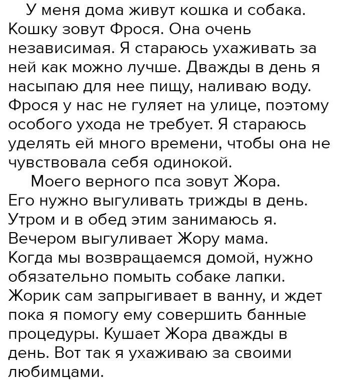 сочинение на тему " как я забочусь о домашних животных"
