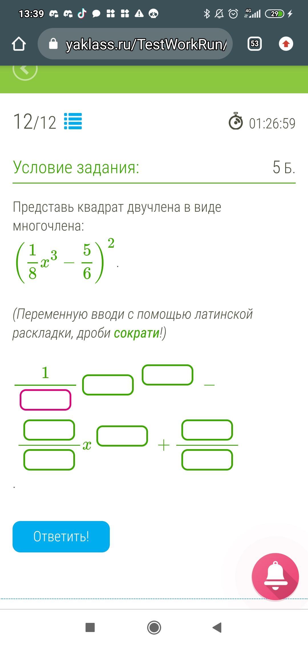 1/64Х^6-5/24Х^3+25/36 надеюсь ты разобрался что куда поставить)