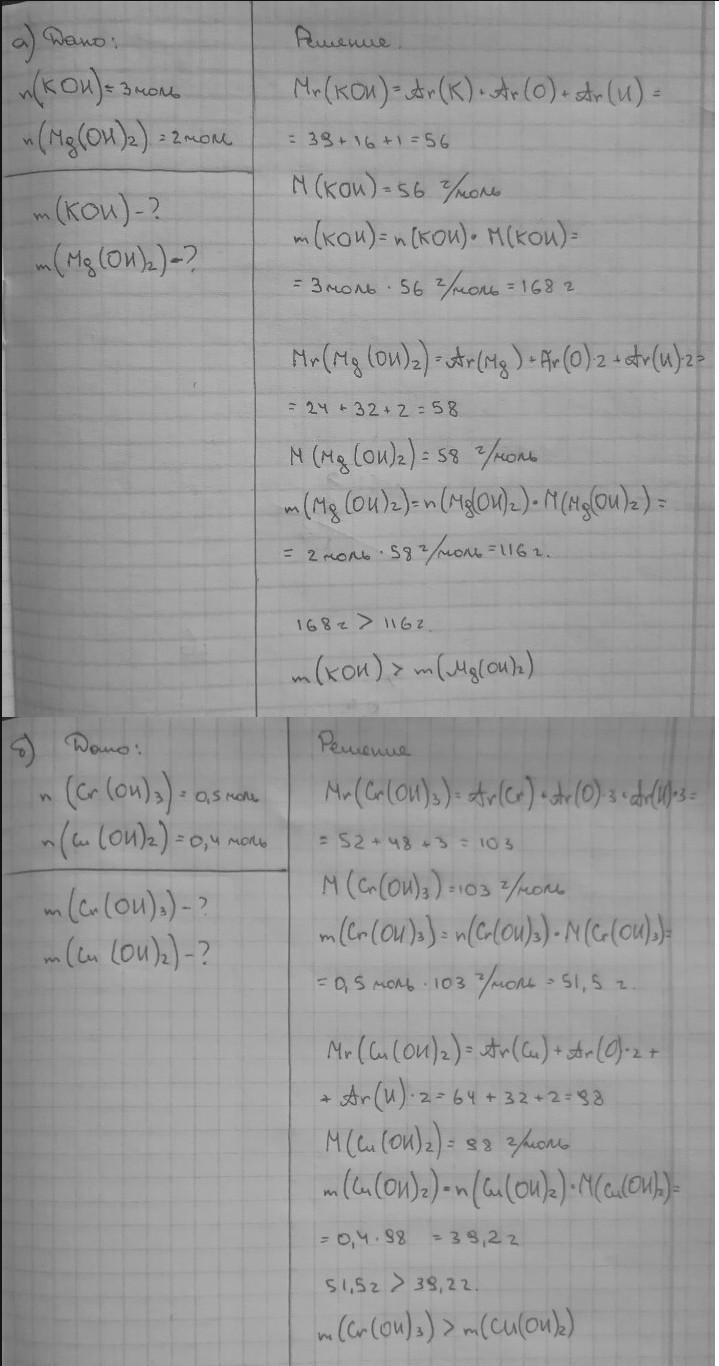 б) хром (ІІІ) гідроксид кількістю речовини 0,5 моль чи купрум (ІІ) гідроксид кількістю речовини 0,4 моль.
