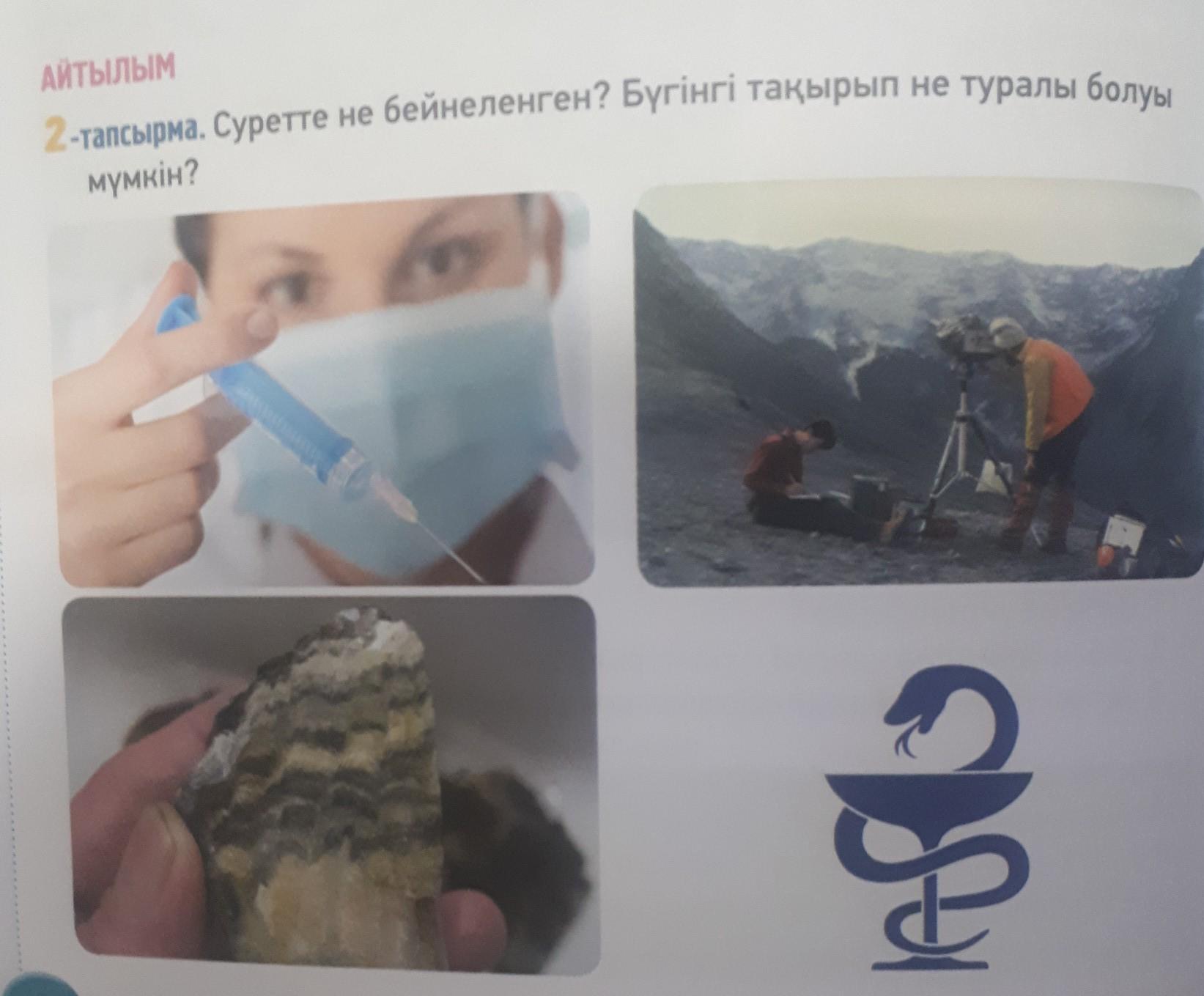 2-тапсырма. Суретте не бейнеленген? Бүгінгі тақырып не туралы болуы мүмкін? помогите пожалуйста срочно