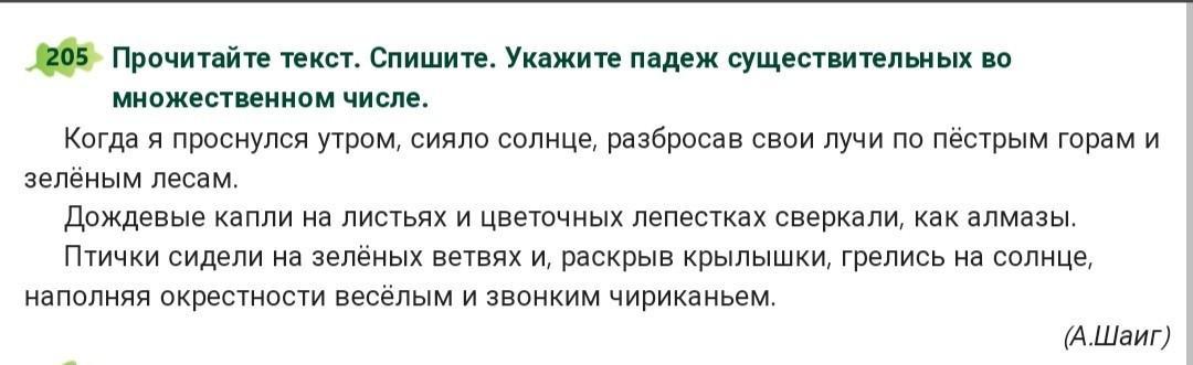 существительные во множественном числе: лучи, горам, лесам, капли, листьях, лепестках, алмазы, птички, ветвях, крылышки, окрестности