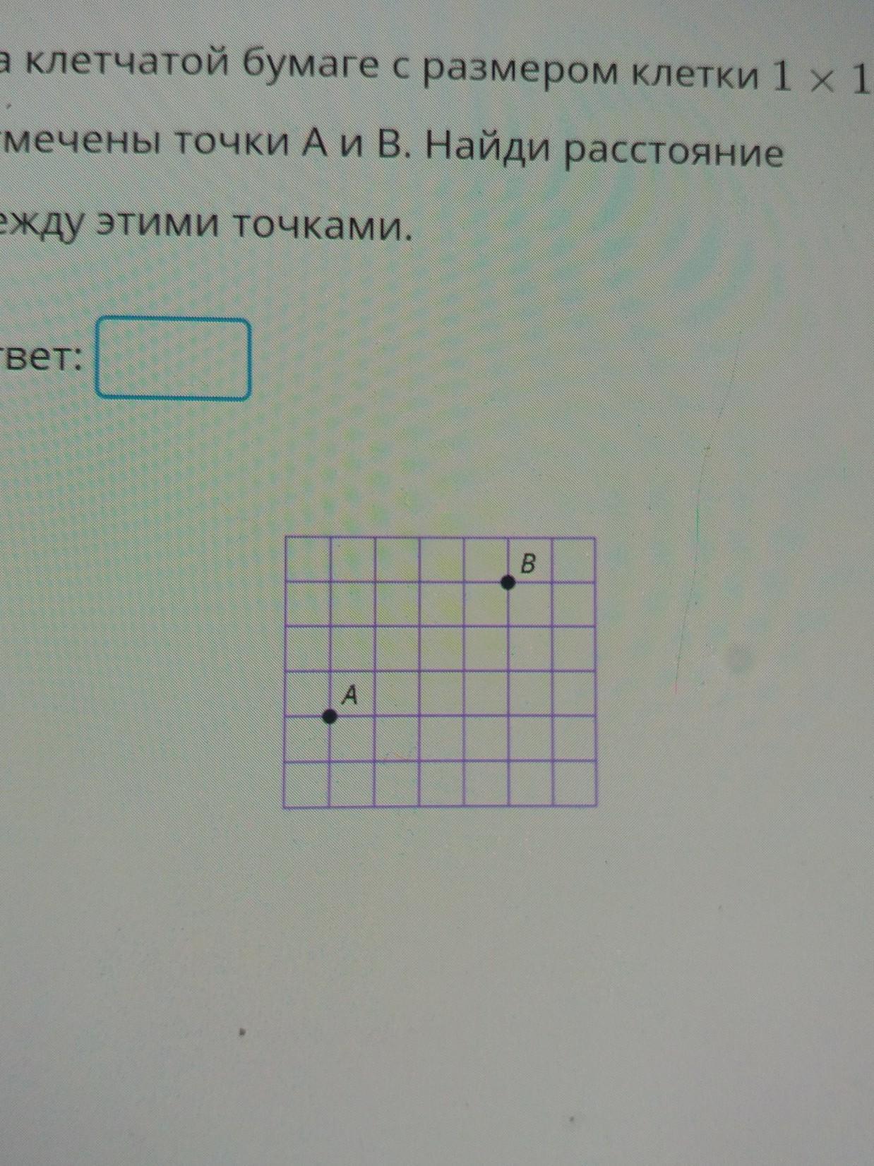 на клеточной бумаге с размером клетки 1 на 1 отмечены точки A и B Найдите расстояние между этими точками