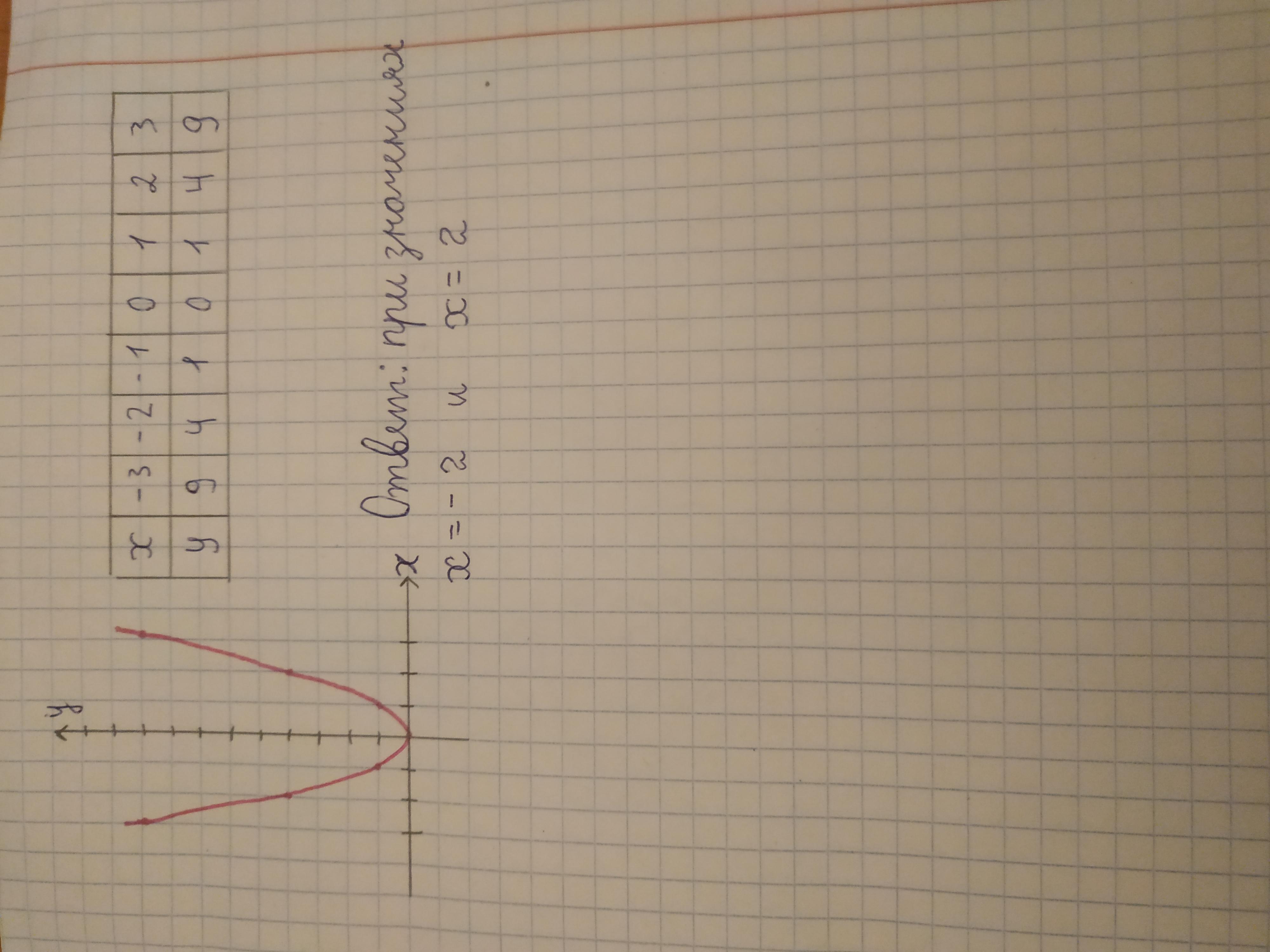 постройте график функции y=x во 2 степени. С помощью графика определите при каких значения x значиние y равно 4