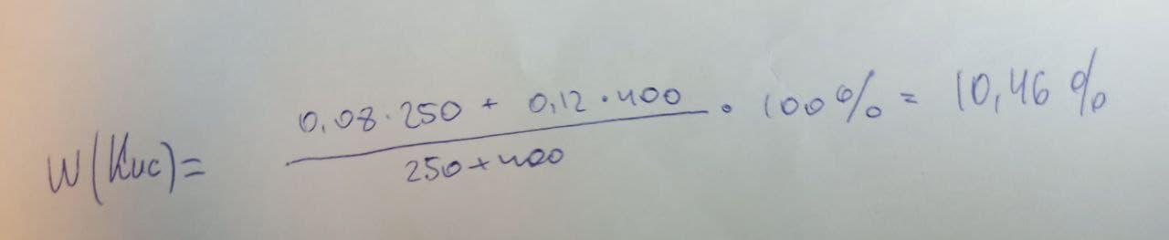 Какова массовая доля кислоты, полученной смешиванием 250 г 8%-ного и 400 г 12%-ного раствора этой кислоты?( решение в виде фотографии с письменным решением)