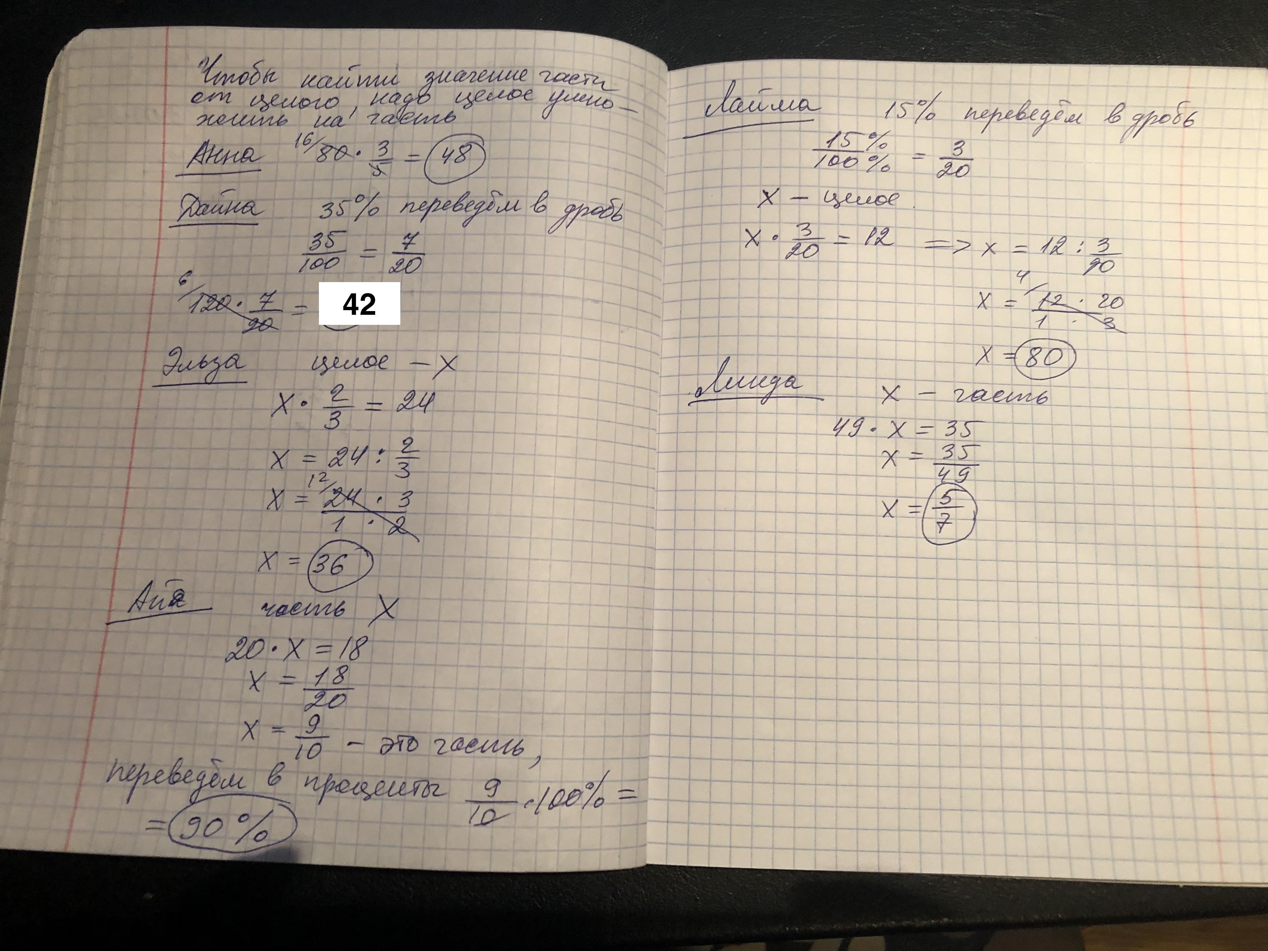 48, 42, 36, 90%, 80, 5/7