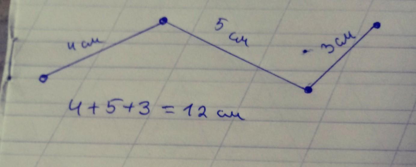 Начерти ломанную линию со сторонами 4 см, 5 см и 3 см. Найди длину ломат