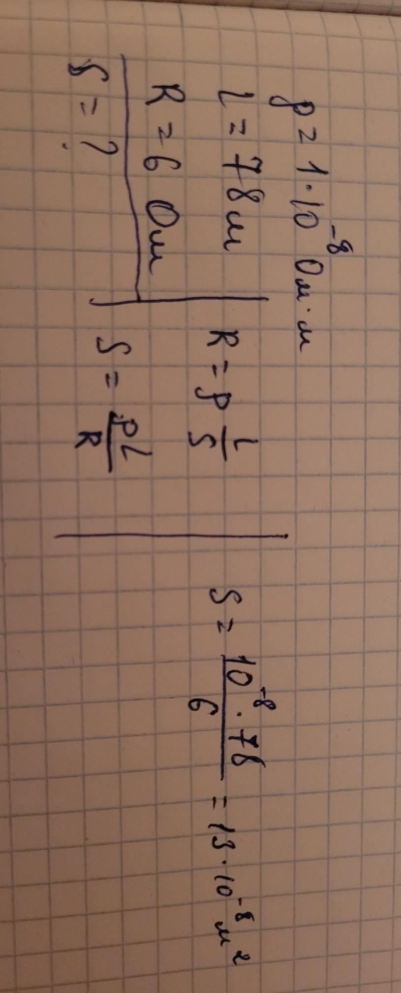 Сопротивление железной проволоки длиной 78 м равно 6 Ом. Определи площадь поперечного сечения проволоки.