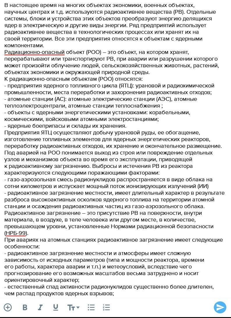сообщение чрезвычайная ситуация на радиационных объектах.помогите написать .....помогите.помогите