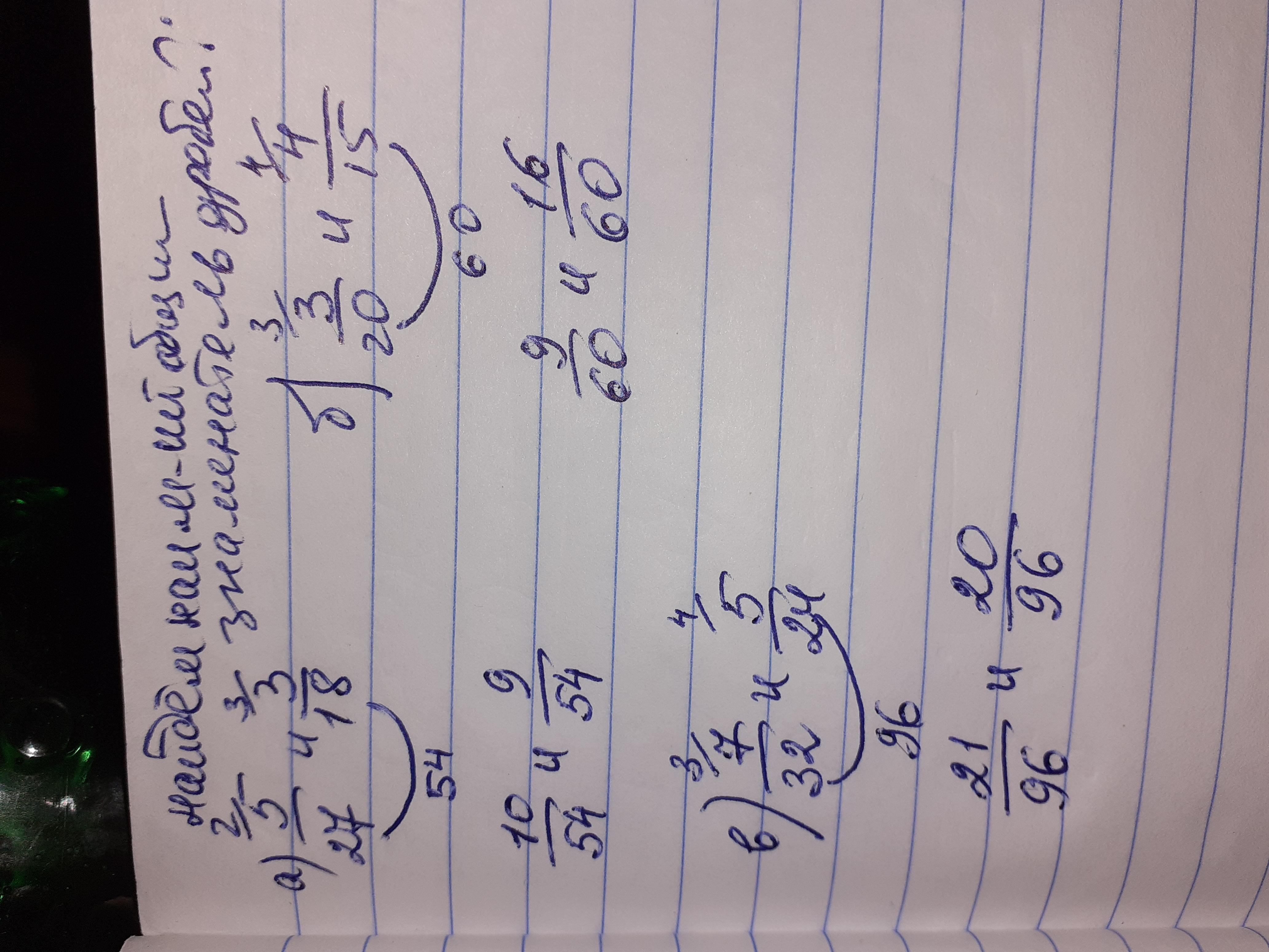 1. зведи дроби до найменшого спільного знаменика а) 5/27 і 3/18 б) 3/20 і 4/15 в) 7/32 і 5/24 помогите пж очень надо