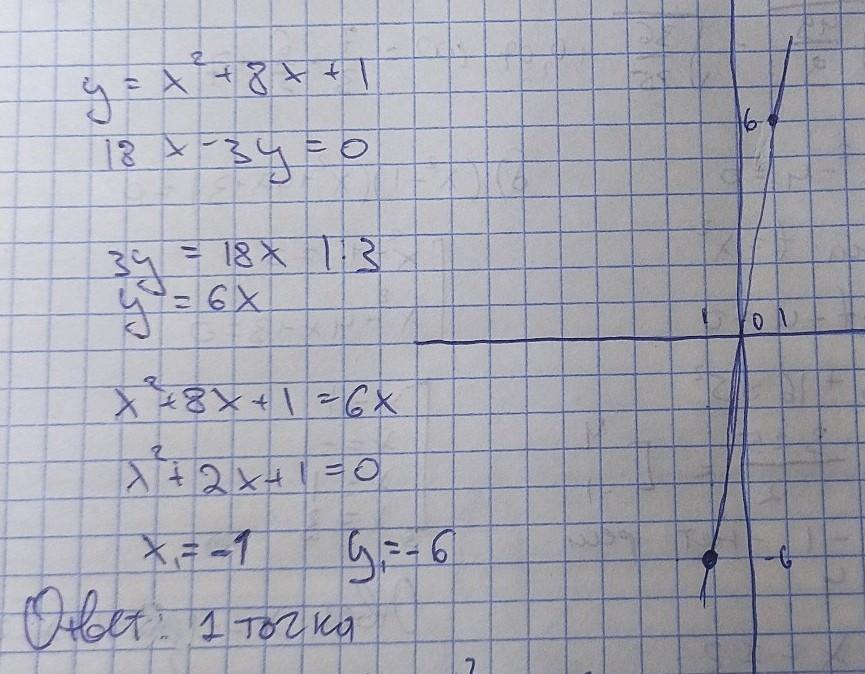 У1=Х²+8Х+1 У2=18Х/3⇒6Х Шукаємо точку перетину з вісью Х