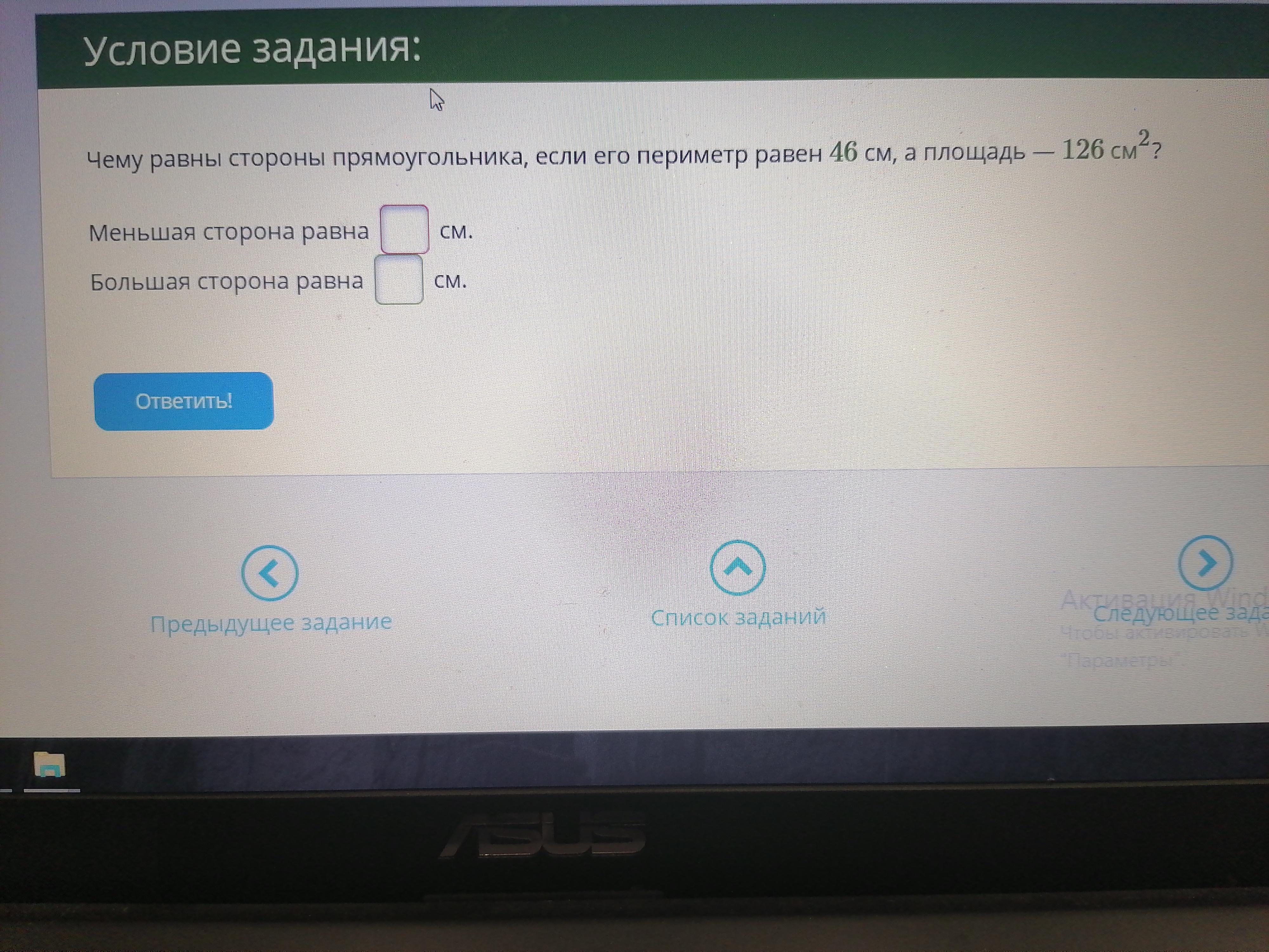 Чему равны стороны прямоугольника, если его периметр равен 46 см, а площадь - 126см^2?