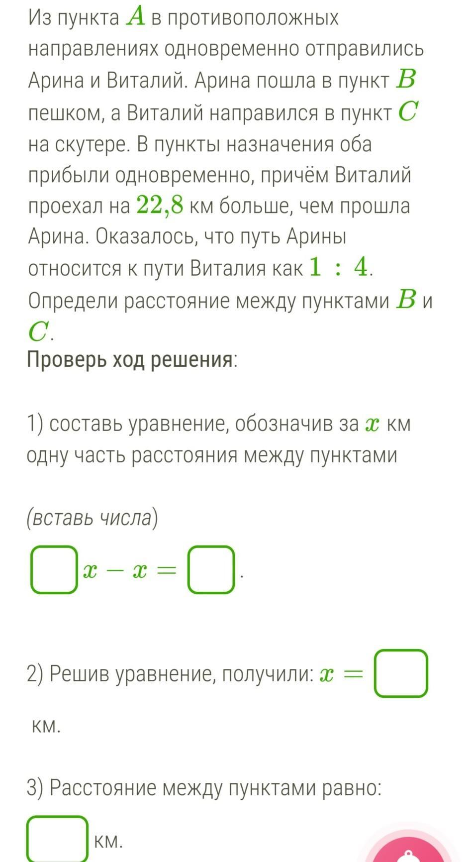 Виталий проехал на 3 части больше 4х-х=3х, а в км будет 22,8