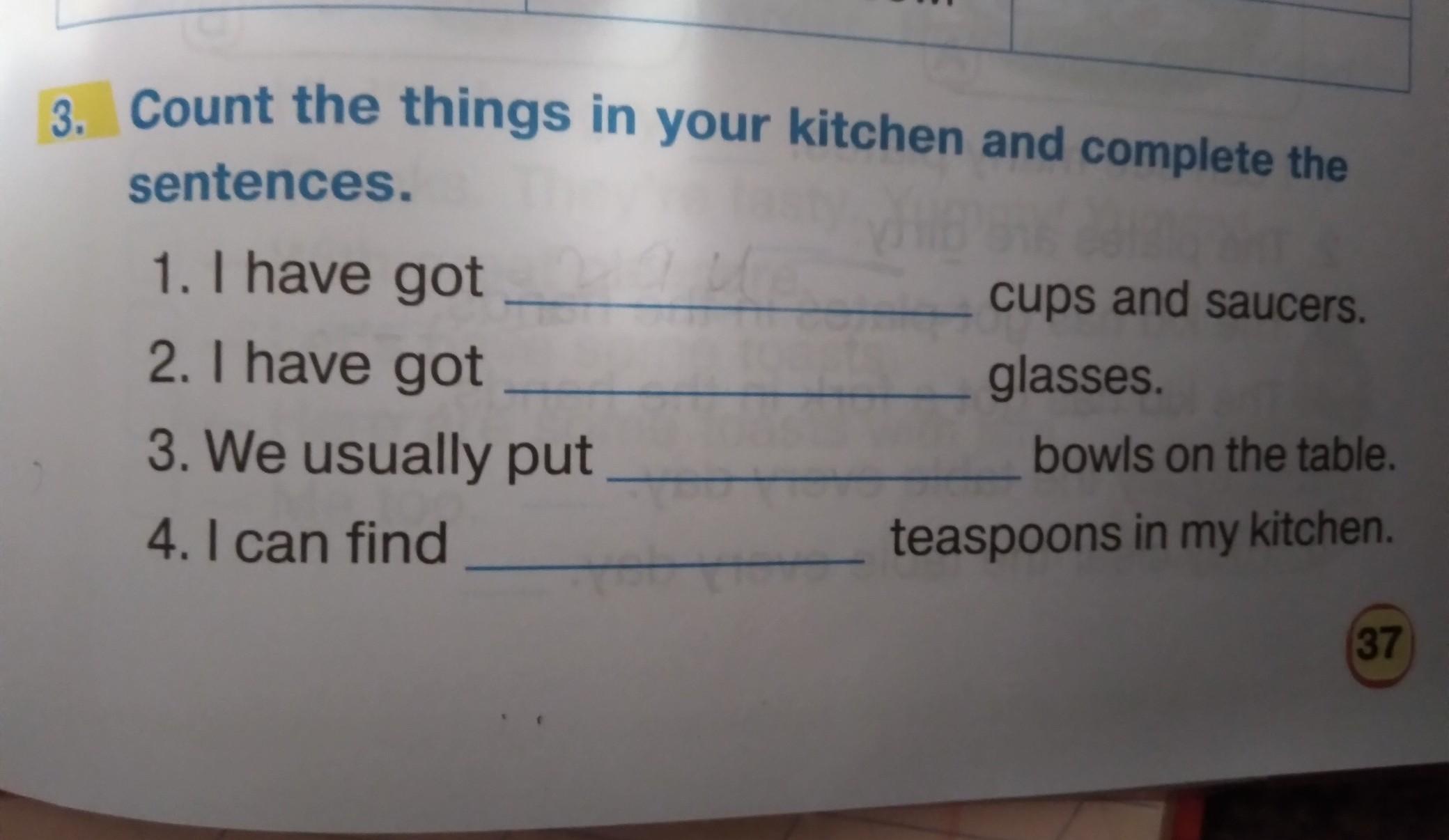 3. Порахуйте речі на вашій кухні та закінчіть речення.