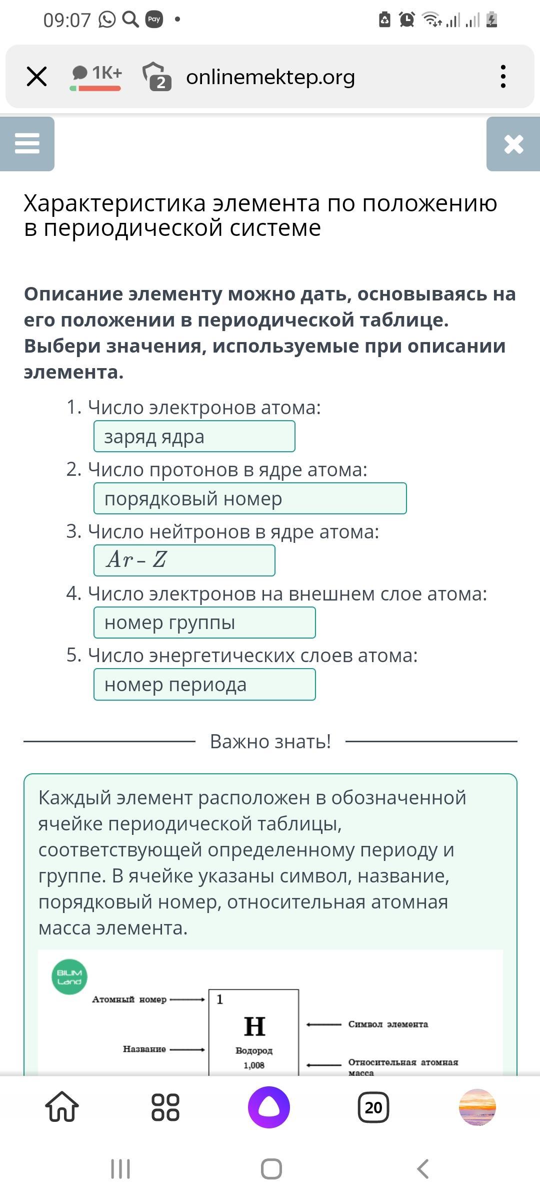 Описание элементу можно дать, основываясь на его положении в периодической таблице. Выбери значения, используемые при описании элемента.