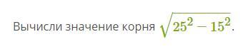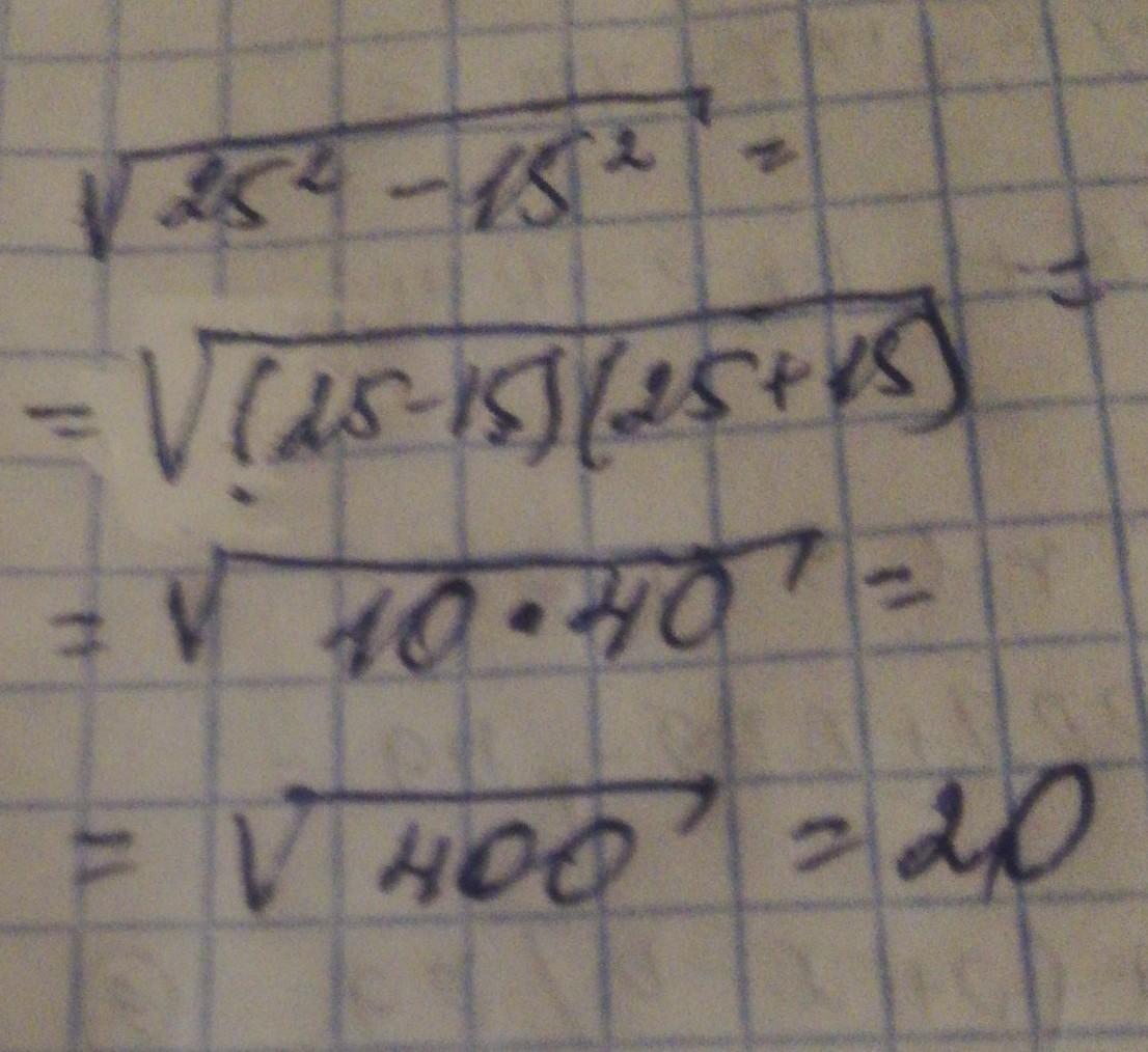 √(25²-15²)=√((25-15)(25+15))=√(10*40)=√400=20.