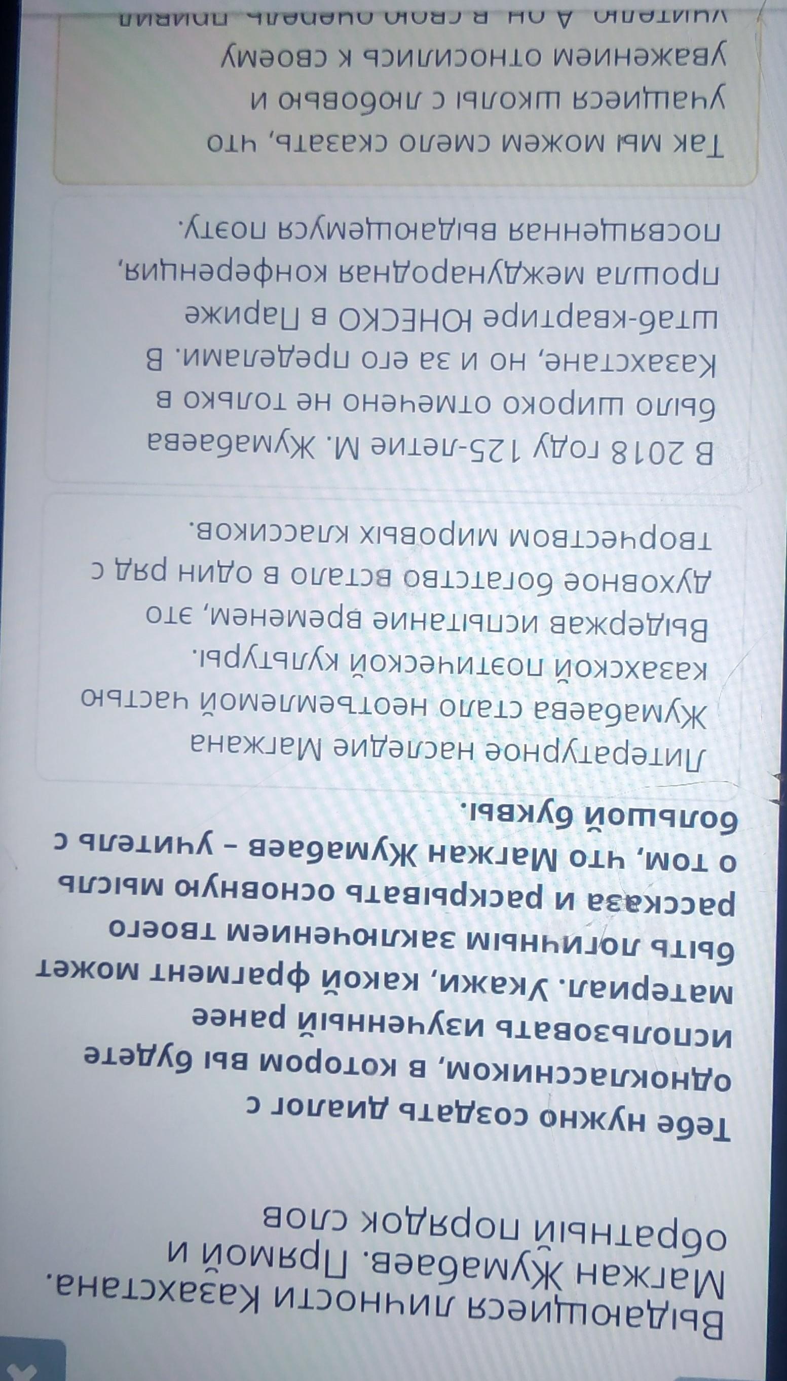 6 класс ТЕМА: Выдающиеся личности Казахстана .Магжан Жумабаев. прямой и обратный порядок слов 9 задание