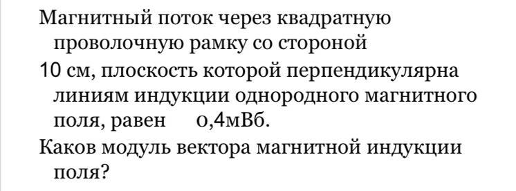 B=Ф/S=Ф/a²=0.4*10⁻³/0.1²=0.04 Тл