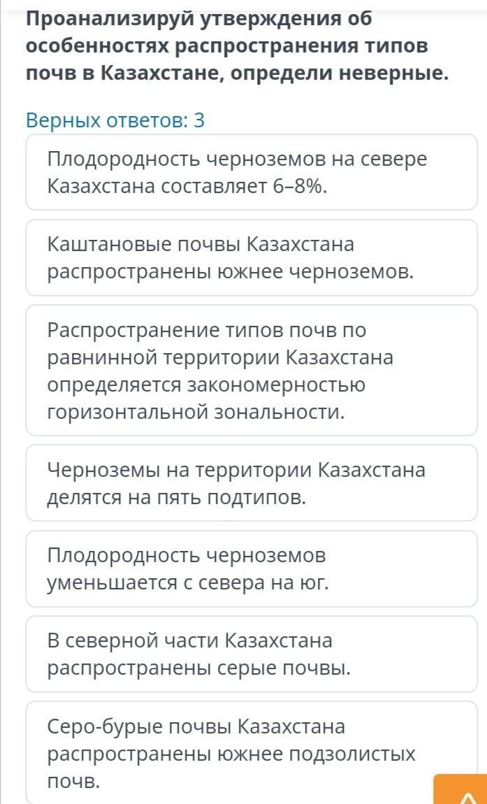 Помогите. Проанализируйте утверждение об особенностях распространения типов почв в Казахстане, определи неверные. Даю 20 баллов