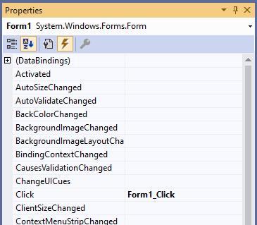 В свойстве формы нужно создать метод Form1_Click как на скрине в приложении
