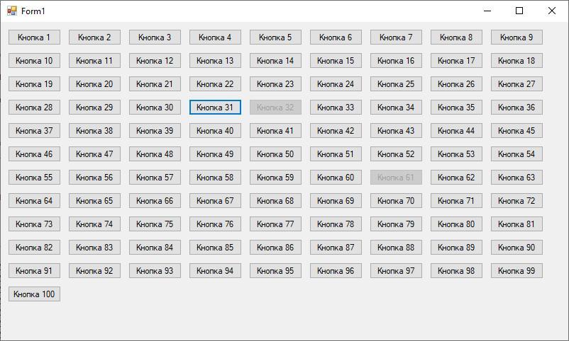 Разместите на форме ряд кнопок (Button). Создайте обработчики события