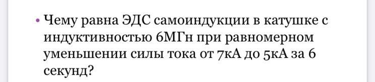 Esi = L*ΔI / Δt = L*(I2-I1) / Δt = 6*10^6 * (5000 - 7000) / 6 = - 2*10^9 В