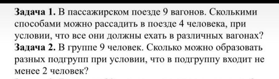 Очень часто эту задачу понимают как задачу на разделение 9 человек по группам. Но в условии нет никаких слов про разделение. Спрашивают про образование ( другими словами про выбор ) уникальной подгруппы из исходного множества.