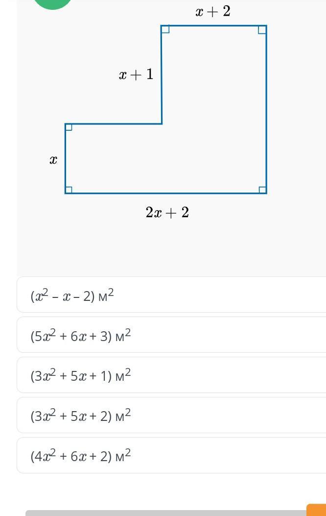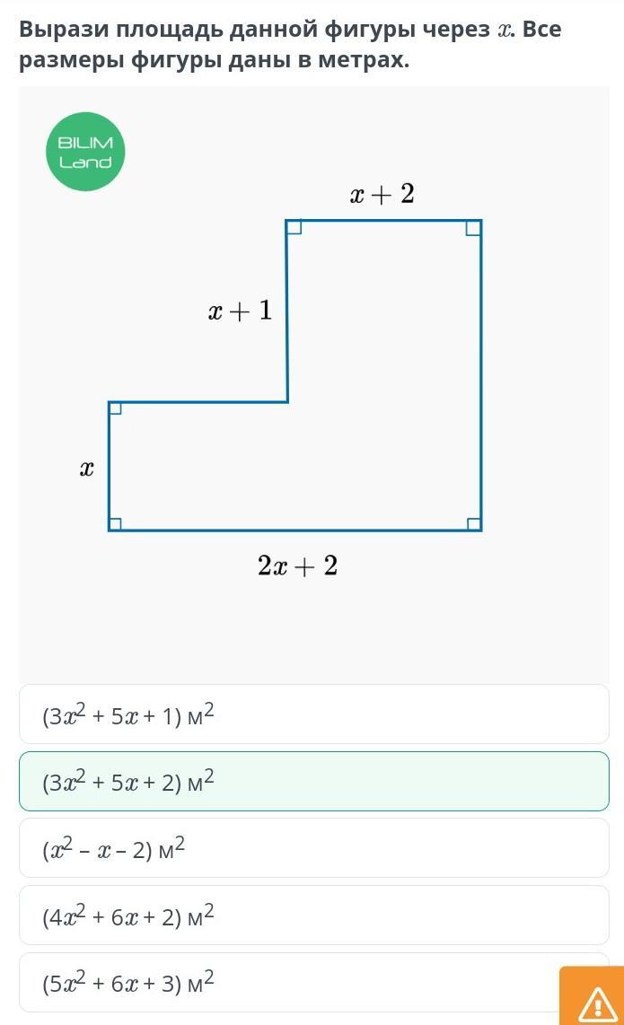Площадь фигуры и ее свойства. Урок 3 Вырази площадь данной фигуры через x. Все размеры фигуры даны в метрах.