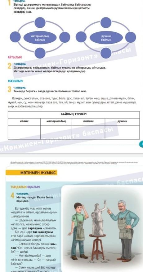 1. к первой диаграмме: акша, уй, колик, киим, ко второй диаграмме: денсаулык, акыл, билим, ел остольное не знаю