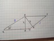 Дано: КМРТ - параллелограмм, ∠КМР=150°, МН и МХ - высоты.