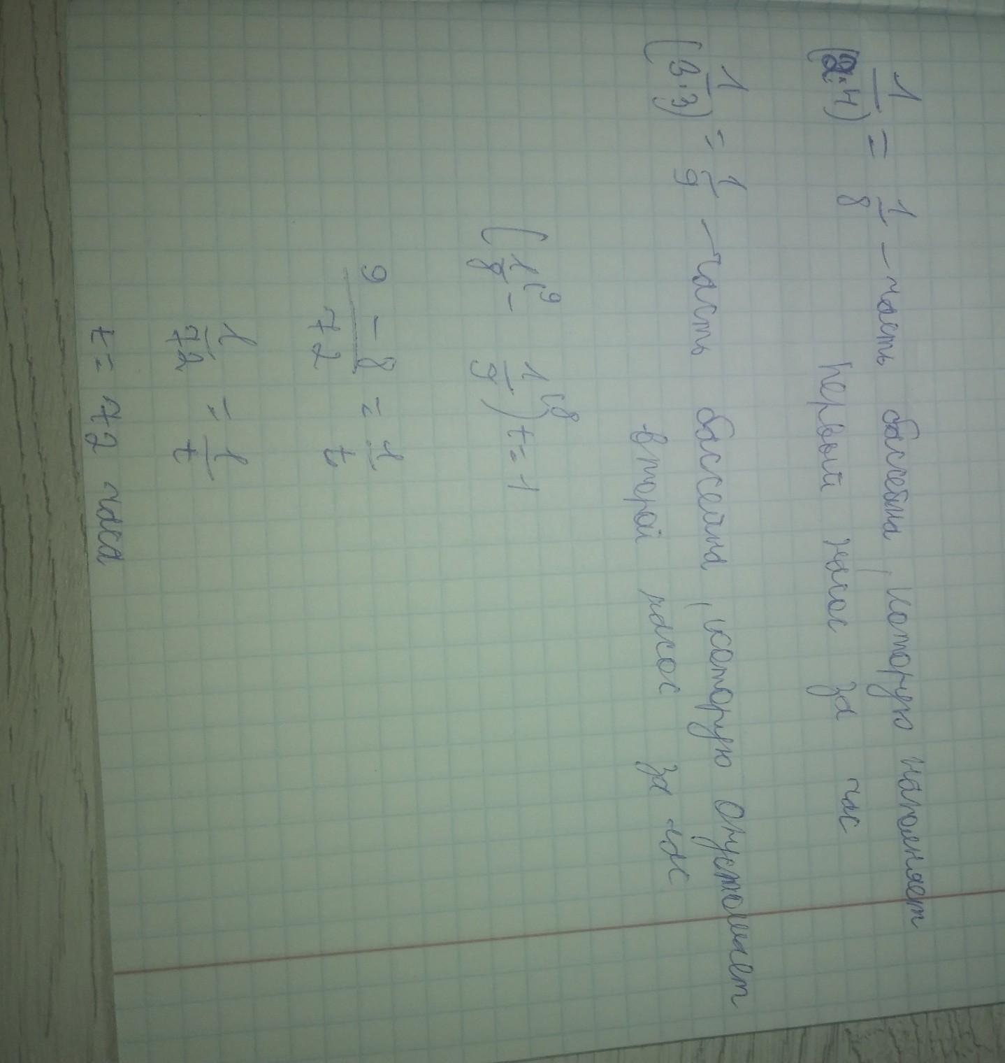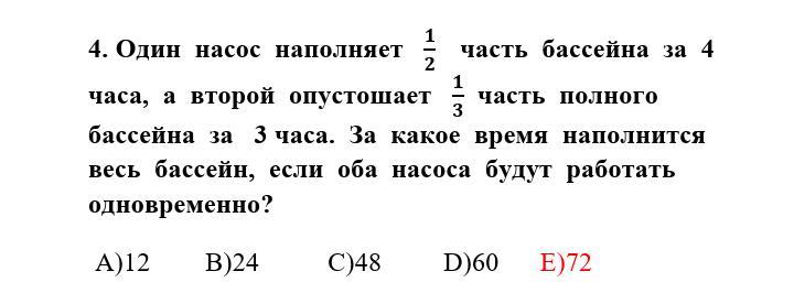 Один насос наполняет 1/2 часть бассейна за 4 часа, а второй опустошает з 1/3 часть полного бассейна за 3 часа. За какое время наполнится весь бассейн, если оба насоса будут работать одновременно?
