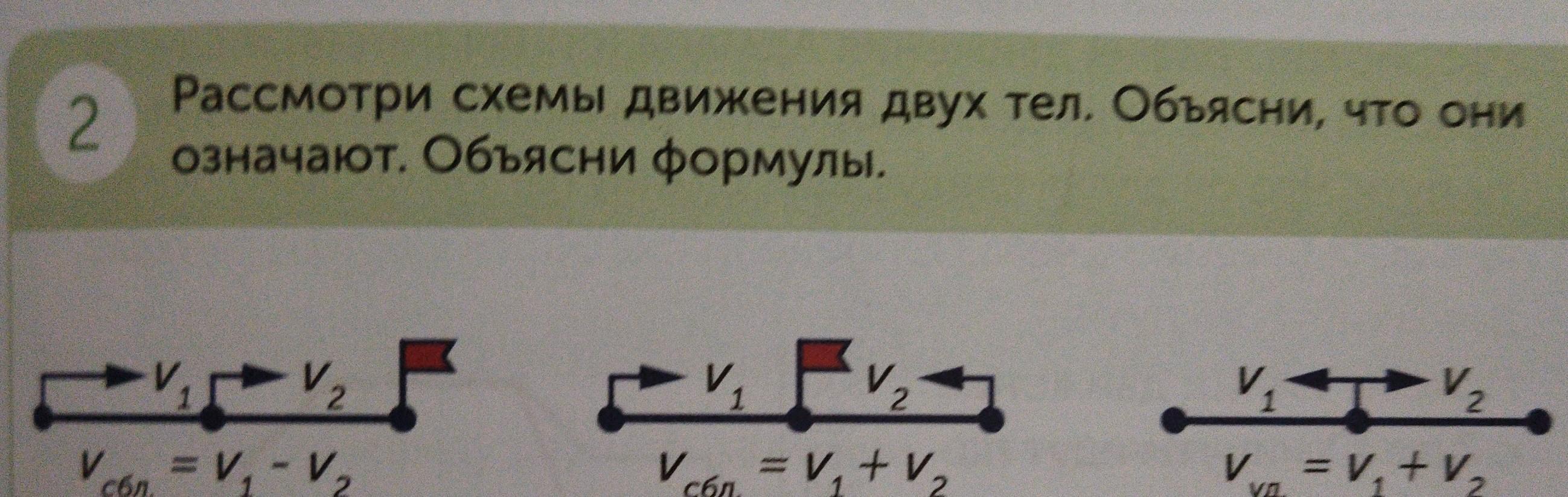 2 Рассмотри схемы движения двух тел. Объясни, что они означают. Объясни формулы. гч, Voon. #V, V. у con sy, +и, Vya vitve