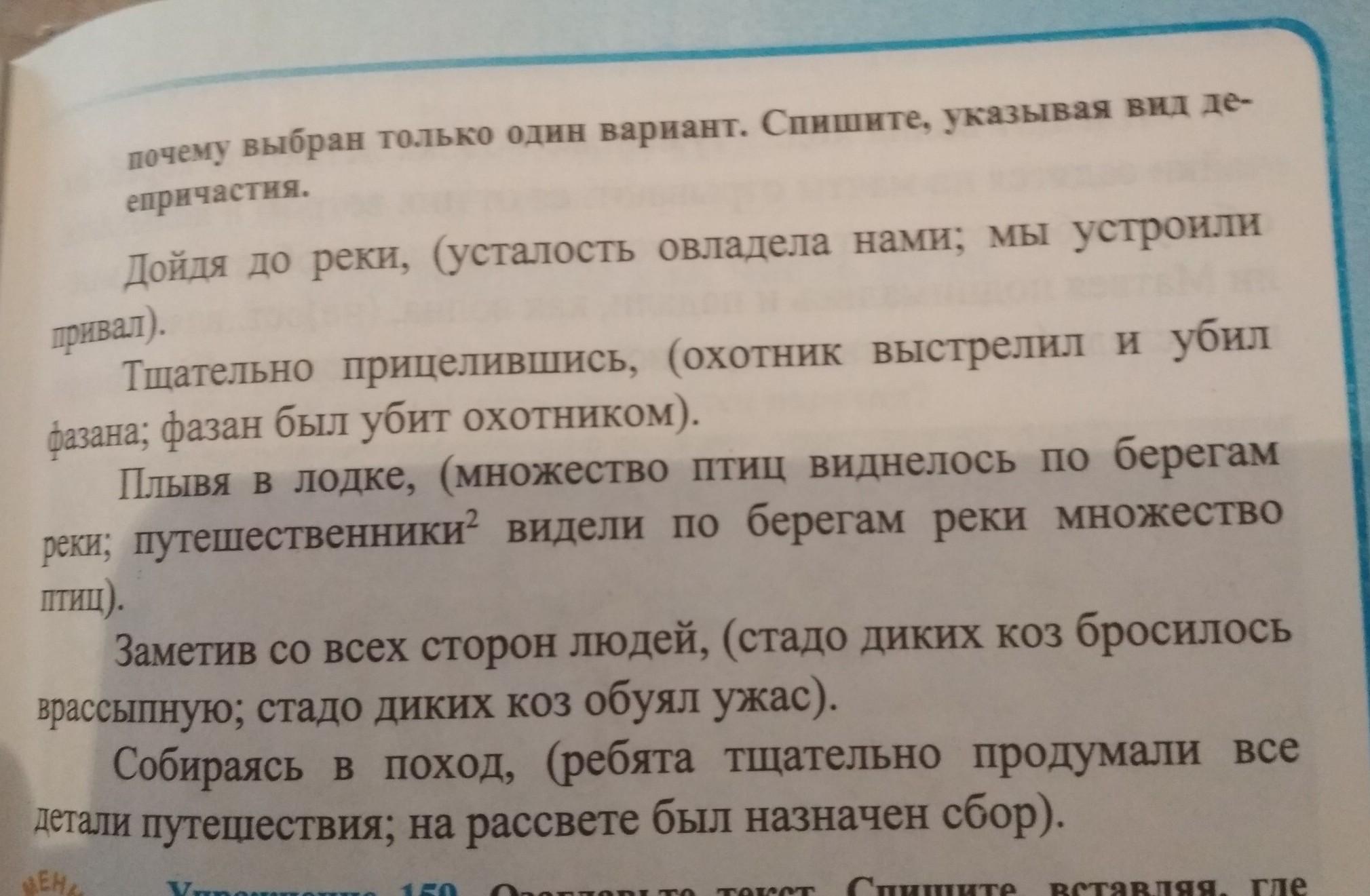 упражнение 158 к данным деепричастным оборотам присоедините одно из двух предложений, данных в скобках.Объясните почему выбран только один вариант. Спишите указывая вид деепричастия