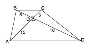 в выпуклом четырехугольнике abcd все стороны имеют разные длины. диагонали четырехугольника пересекаются в точке О, ОС=5 см, ОВ=6, ОА=15, ОD=18 см. Докажите, что четырехугольник трапеция