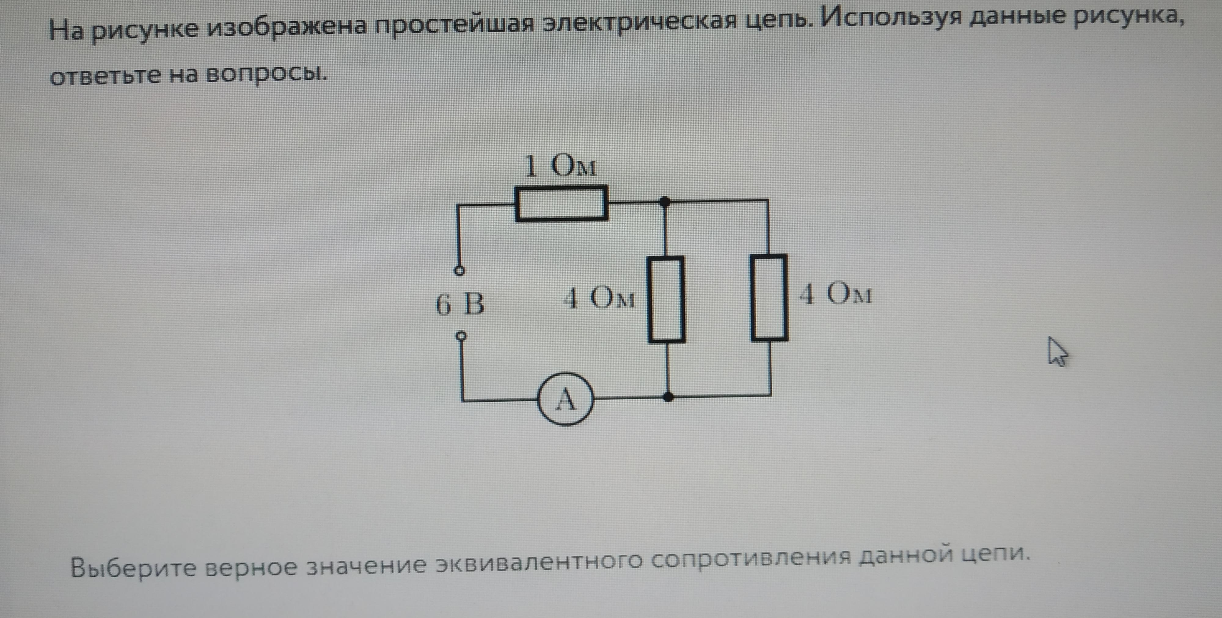 Параллельно включение резисторов по 4 Ом имеет эквивалентное сопротивление: