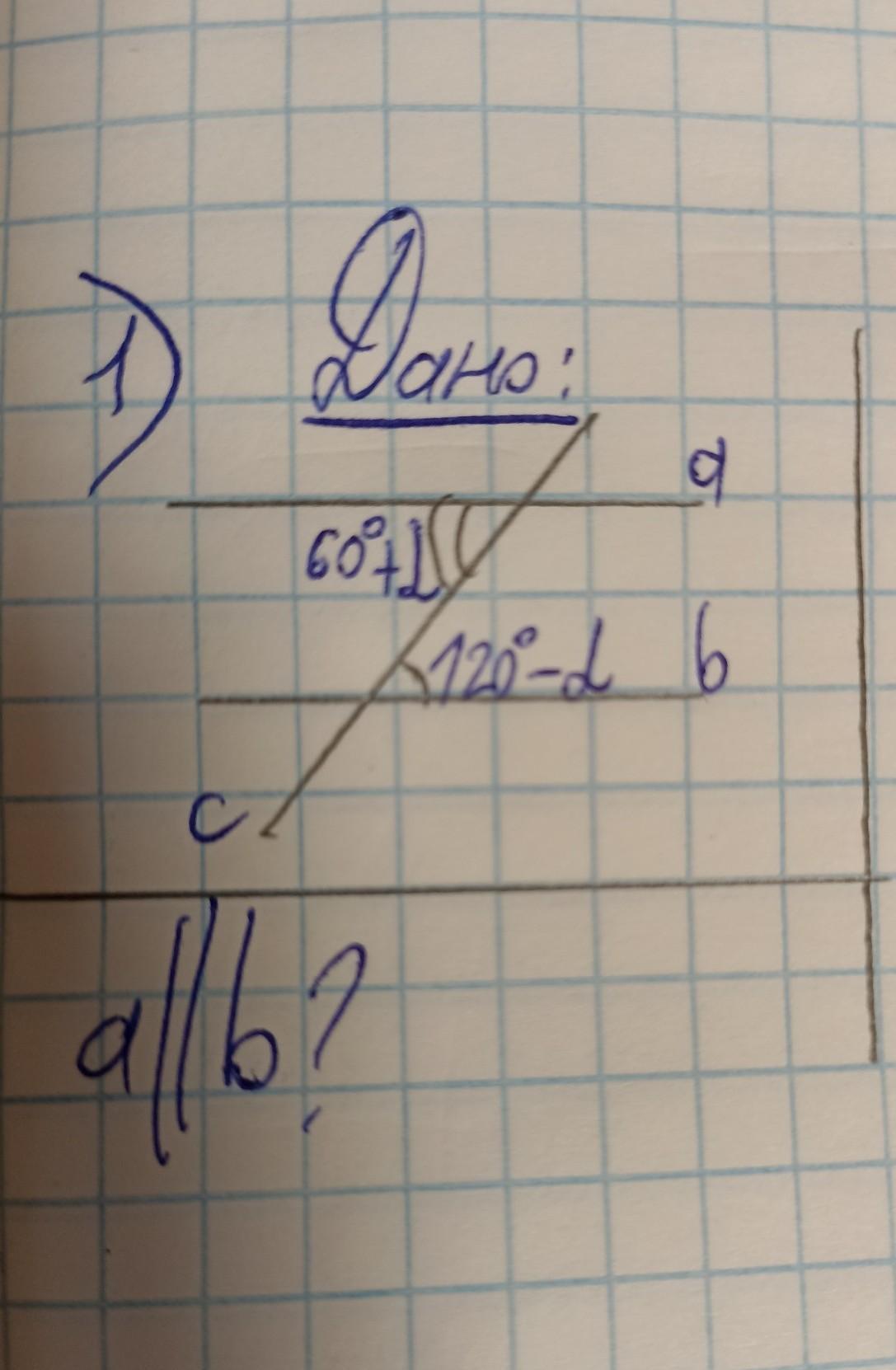 Посмотрите на рисунок, скажите параллельны ли a и b? и какое должно быть значение альфа?