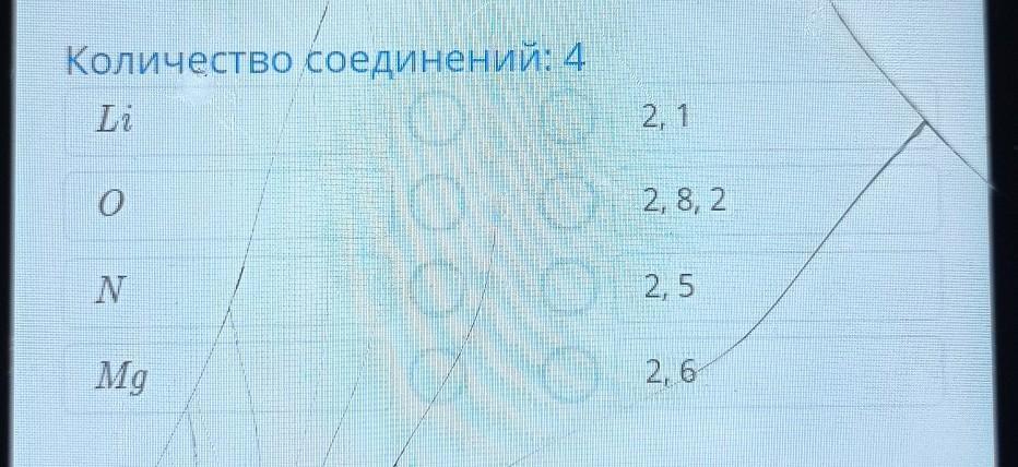 Проведи соответствие между символами элементов и соответствующим распределением электронов на энергетических слоях.