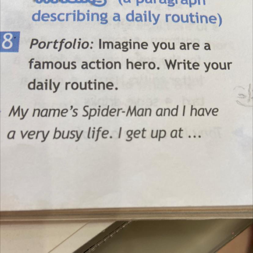 My name's Spider-Man and i have very busy life. I get up at 5:00