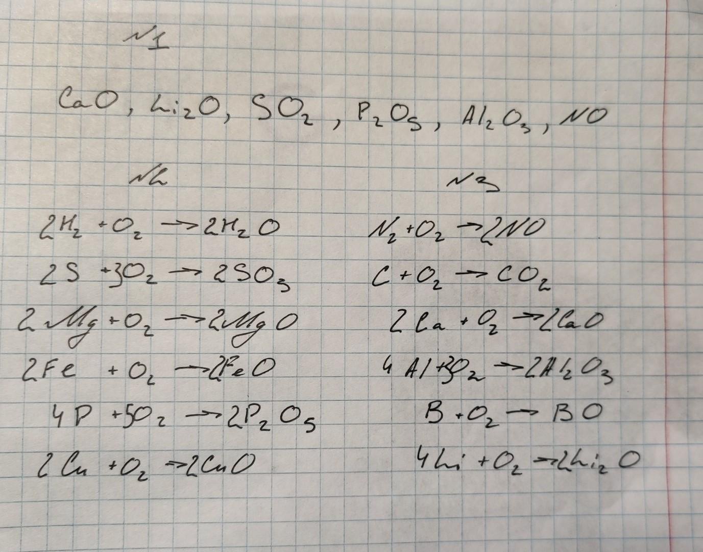 Кальцій оксид, Літій оксид, Сульфур(IV) оксид, Фосфор(V) оксид, Алюміній оксид, Нітроген(III) оксид,