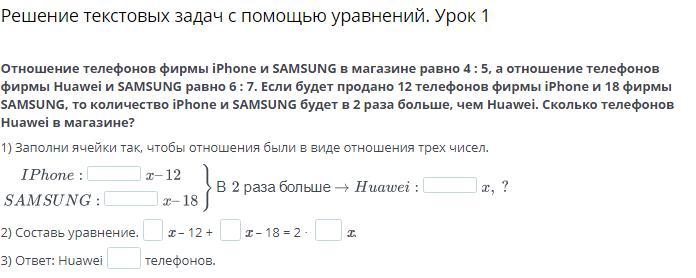 Отношение телефонов фирмы iPhone и SAMSUNG в магазине равно 4 : 5, а отношение телефонов фирмы Huawei и SAMSUNG равно 6 : 7. Если будет продано 12 телефонов фирмы iPhone и 18 фирмы SAMSUNG, то количество iPhone и SAMSUNG будет в 2 раза больше, чем Huawei. Сколько телефонов Huawei в магазине?