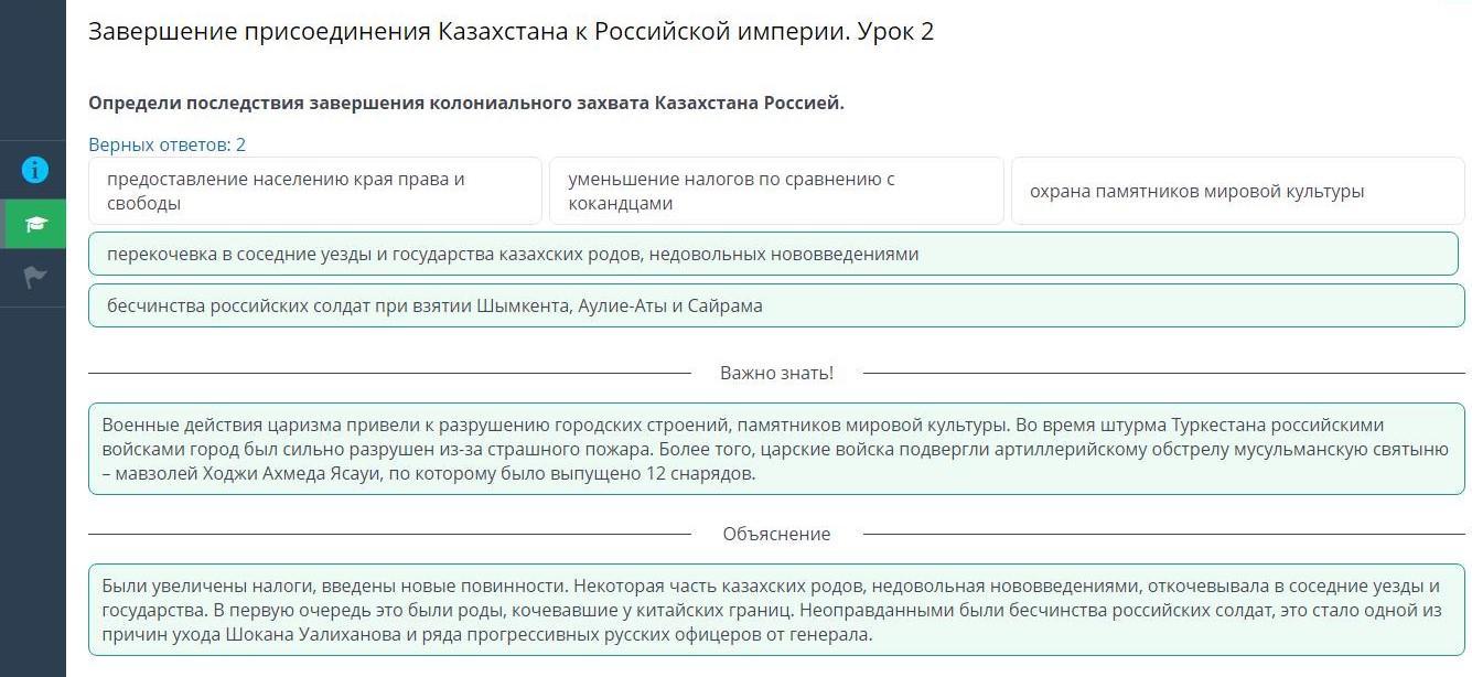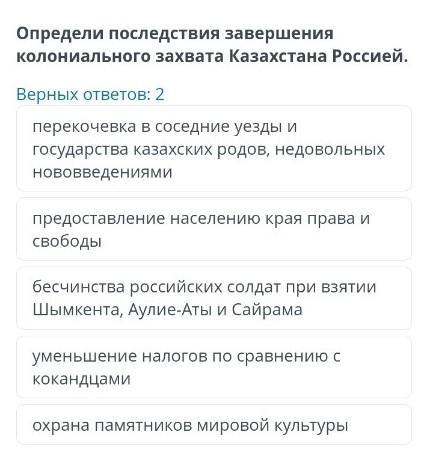 Определи последствия завершения колониального захвата Казахстана Россией. Верных ответов: 2
