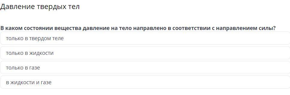 В каком состоянии вещества давление на тело направлено в соответствии с направлением силы?