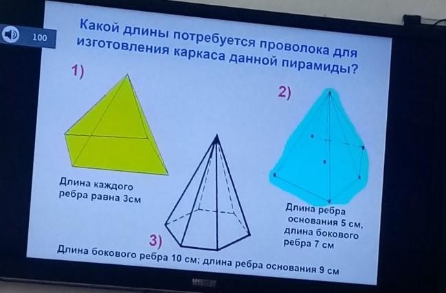 В третьей пирамиде считаем сначала сумму боковых ребер : В пирамиде боковых ребер 6 по 10 см длиной (6*10=60 см)