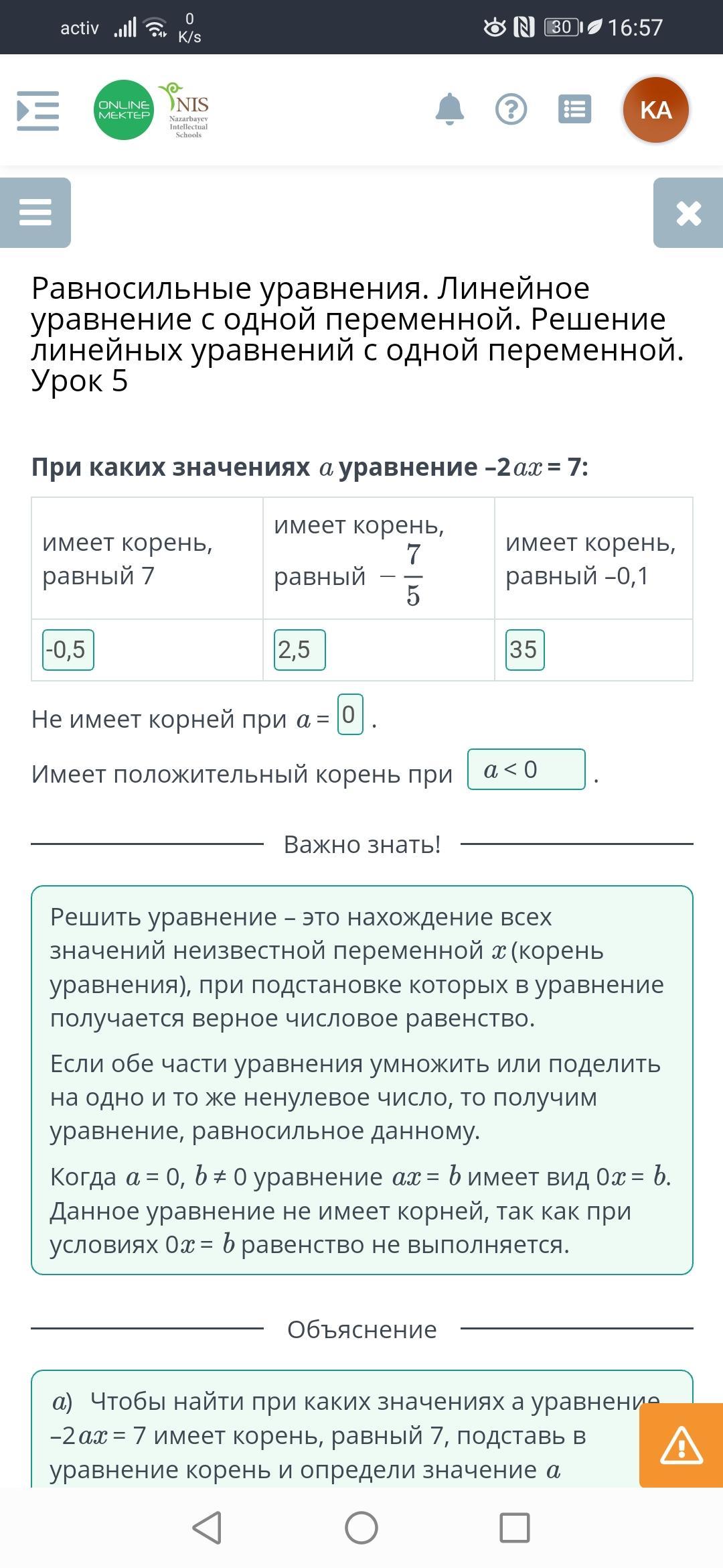 При каких значениях а уравнение -2ax = 7: имеет корень, равный 7 имеет корень, ранный