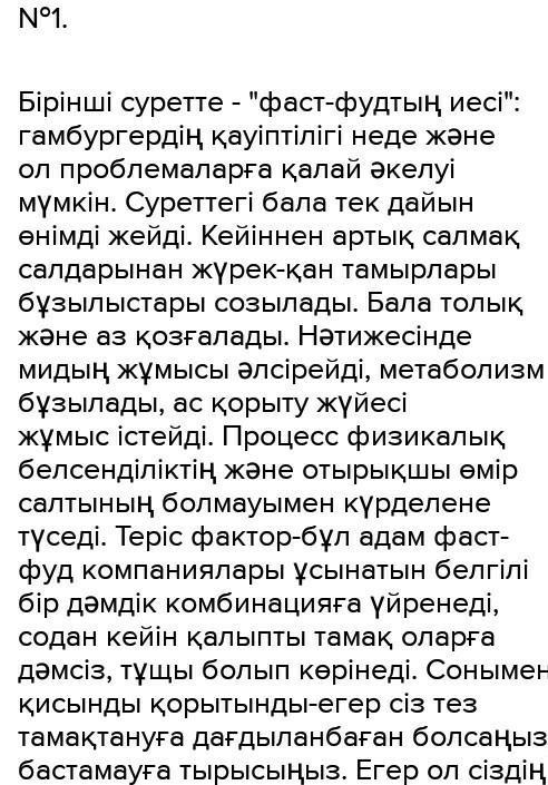 мәТIНСОҢЫ ЖҰМЫС АЙТЫЛЫМ -тапсырма. Суреттегі екі баланың қайсысы гамбургерді жиі жейді? Қайсысы тек табиғи өнім жейді? Өз пікіріңді дәлелде! (на АЙТЫЛЫМ