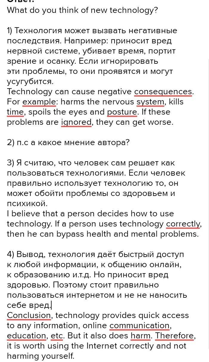 написать эссэ (4 абзаца, не менее 60 слов) на тему "What do you think of new technology?" по плану