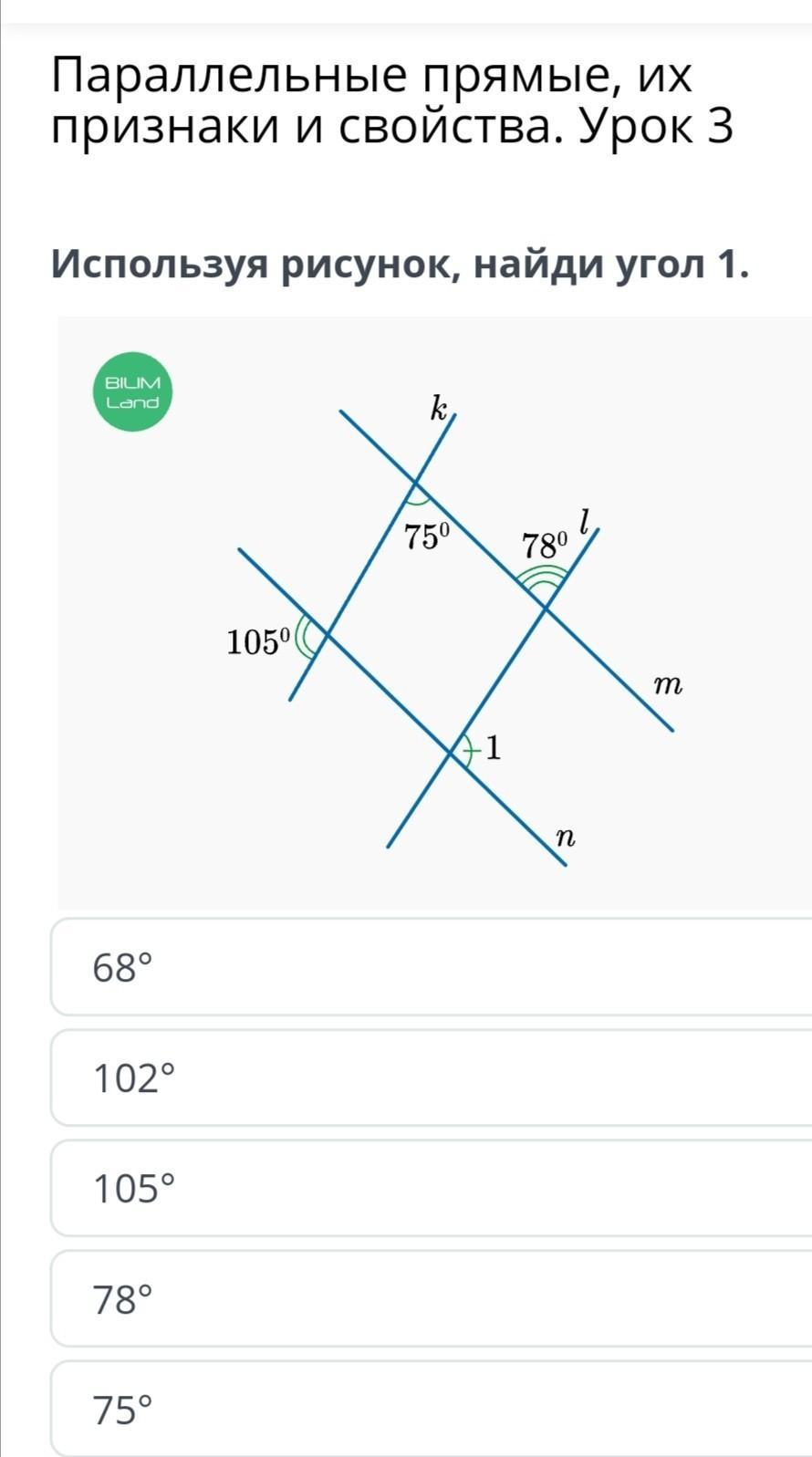 n-прямая, 1+2 (который смежный с 1по горизонтали), т к этот угол 2 соответственный с углом который равен 78, угол 1 равен 102 (180 -78)