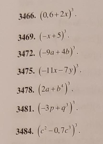 7) (c^2-0,7c^3)^3=c^6-2,1c^7+1,47c^8-0,343c^9.7)(c2−0,7c3)3=c6−2,1c7+1,47c8−0,343c9.