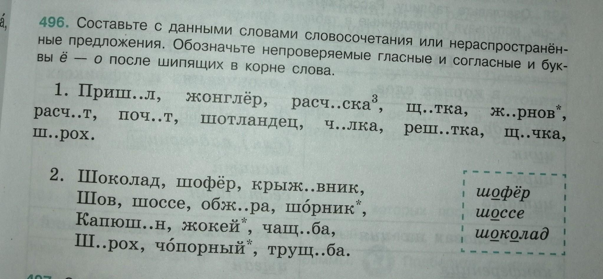 1. Пришёл домой, жонглёр в цирке, расчёска девочки, зубная щётка, мельничный жёрнов, расчёт доходов, требующий почёта, немецкий шотландец, длинная чёлка, металлическая решётка, румяная щёчка, незаметный шорох.